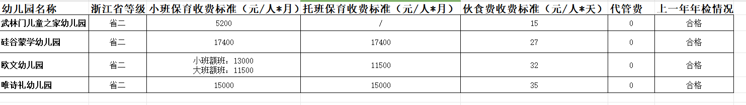 【民办收费】滨江区民办幼儿园的办学情况和收费信息