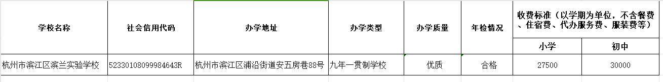 【民办收费】滨江区民办学校的办学情况和收费信息